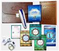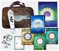 محتویات : قلم قرانی همراه با کیف مخصوص، کتاب قرآن کاغذ تحریر با ترجمه فارسی در قطع وزیری، کتاب منتخب مفاتیح درشت خط در قطع جیبی، دفترچه سفر (شامل راهنما، استفاده آسان از قلم هوشمند بدون کتاب، دکمه های کنترلی و تمامی امکانات جانبی شامل منتخب مفاتیح، صحیف سجادیه، نهج البلاغه و ...)، کتابچه تفسیر کامل قرآن (قرائت هر آیه از هر سوره تنها با یک اشاره) ، دفترچه نماز و نجوای بعد از آن، شارژر، هدفون، کابل USB جهت اتصال به رایانه، کارت گارانتی .