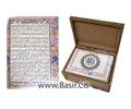 کتاب قرآن لبه طلایی همراه با قاب کشوییقطع جیبی، خط استاد نیریزی