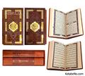 کتاب قرآن کریم نفیس قطع رحلی همراه با قاب بازشو (جعبه) چرمی لیزری