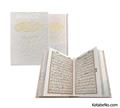 کتاب قرآن نفیس سفید گالینگورهمراه با قاب کشویی و دفترچه رحلی بله برونقطع رحلی