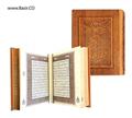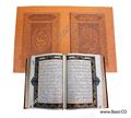 کتاب قرآن نفیس قطع جیبی 1/8 (اندازه 16.5*21 سانتی متر)جلد ترمو (چرمی) همراه با قاب بازشو ترمو لیزری